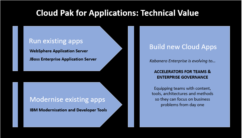 IBM Cloud Pak for Applications helps accelerate the modernisation and building of applications by using built-in developer tools and processes.